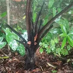 将准备好的腐叶土用甲基托布津或多菌灵按说明书兑水消毒杀菌。树体和根也用此法消毒,将坑的底填 上消过毒的腐叶土踩紧。在操作过程中一边给树定位,一边在腐叶土上撒上呋喃丹杀死地下害虫。栽完后浇透水。笔筒树喜高湿环境,因此应搭架盖上黑色遮阳网,遮去60%以上的直射阳光,冬季还应防霜。笔筒树怕干旱,忌水涝,所以树盘周围应排水良好。根据地理环境情况,每天可对树茎和树盘喷雾状水以保证湿度。30天后3个新主叶就可长大,其他嫩叶也开始萌发。