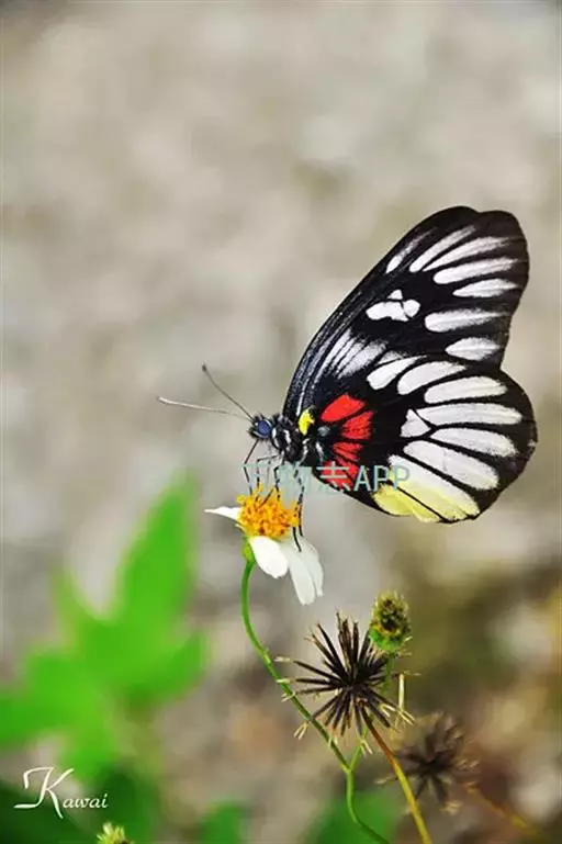 展翅宽60~70mm。雄蝶翅膀表面底色黑色,具灰白色斑纹;下翅表面内缘附近具黄色大斑纹;下翅腹面具许多黄色斑,基部附近具红色斑。雌蝶翅膀底色较淡,下翅表面不具黄斑。
