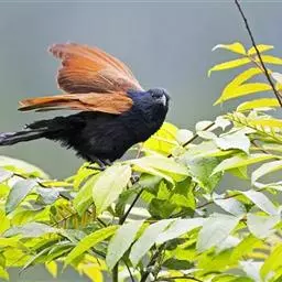 小鸦鹃,是杜鹃科、鸦鹃属的中型鸟类,体长30-40厘米,外形似褐翅鸦鹃,通体黑色,肩和翅栗色,…