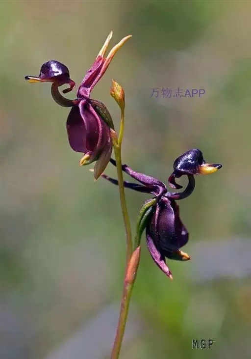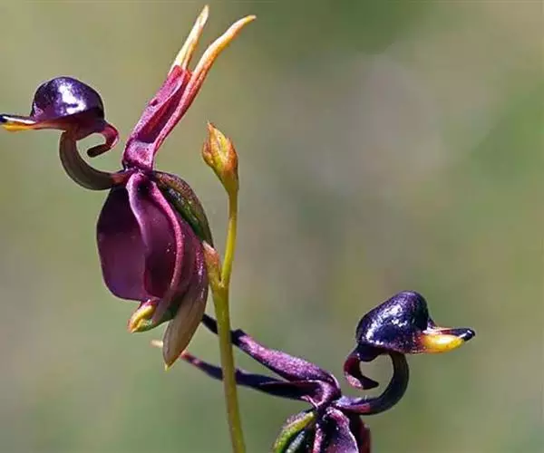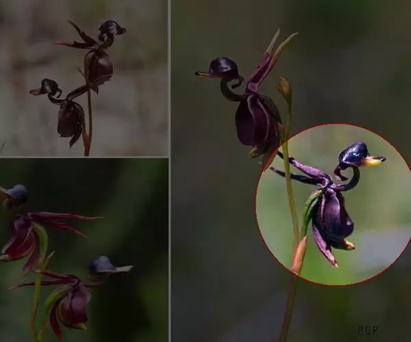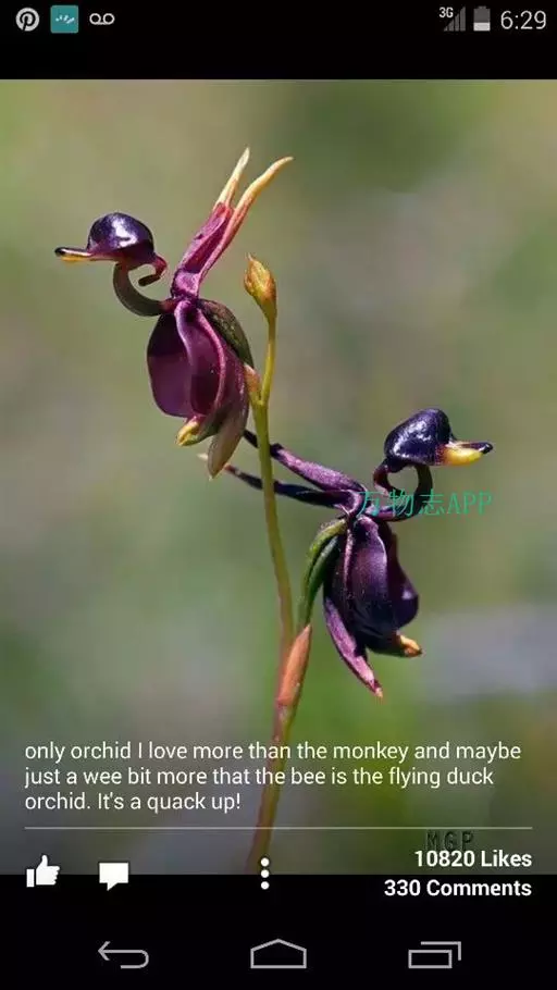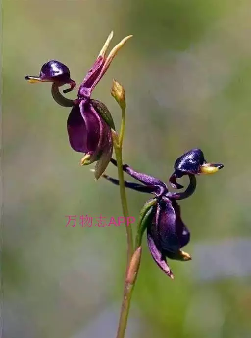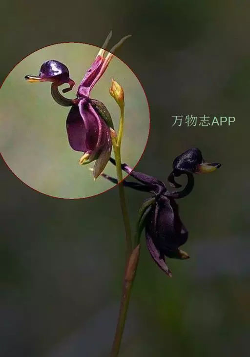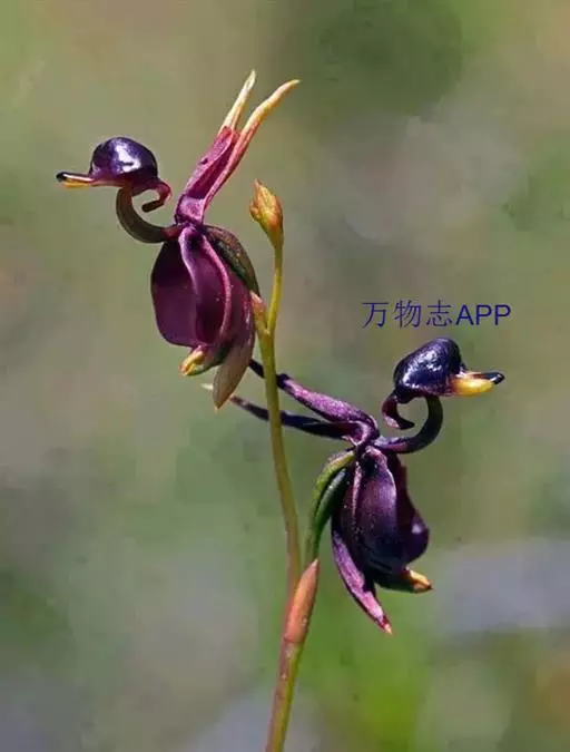 飞鸭兰(Flying Duck Orchid)其花朵侧面像极了一只只凌空飞起的小鸭子,非常生动。为兰科植物,一个花莛通常多朵花。