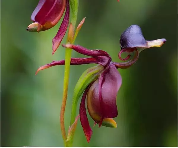 澳大利亚特产地生兰,卡莉娜兰(Caleana) 其花朵侧面像极了一只只凌空飞起的