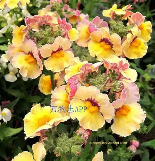 龙面花,别名耐美西亚,玄参科龙面花属 ,原产南非。它花形优美雅趣,色彩鲜艳多变,成片栽种则犹如五彩祥云平铺地面,很是灿烂绚丽。在园林中龙面花是良好的花坛布置材料,可成片栽植成景,也可作盆花和切花。