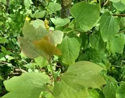 落叶灌木或小乔木;树皮棕褐色,有纵裂及斑点。幼枝条黄绿色,光滑、无皮孔,幼时有绢状柔毛,不久脱落。冬芽长角锥状,芽鳞红色。叶互生,通常卵形或倒卵状椭圆形,有时为狭倒卵形或狭椭圆形,长(5)9-12(16.5)厘米,宽(2.5)5.5-8(12.5)厘米,先端渐尖,基部圆或宽楔形,有时稍心形,纸质,上面绿色,幼时在中脉上被微柔毛,不久脱落,下面带绿苍白色,被白色柔毛,后渐脱落成几无毛,羽状脉,侧脉每边6-8(10)条;叶柄长6-17(30)毫米,幼时被柔毛,后脱落。