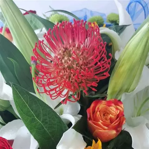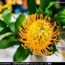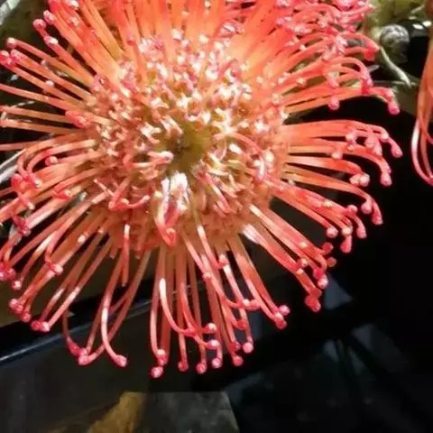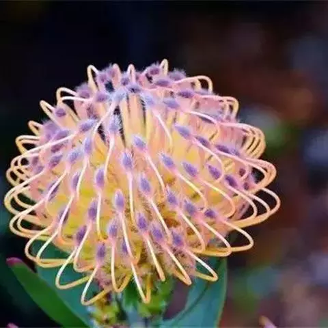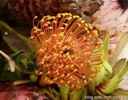 帝王花,山龙眼科帝王花属多年生常绿灌木植;茎干粗壮,叶色翠绿光亮;花朵呈圆球状;其苞片有的完全打开,…