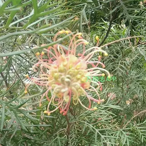 银桦(Grevillea robusta)大乔木,高可达20米;幼枝被锈色茸毛。叶为2回羽状深裂,裂片5-10对,披针形,常5-10厘米,两端均渐狭,第2次裂片全缘或再分裂,上面秃净而亮或薄被丝毛,背密被银灰色丝毛,边缘背卷。花呈橙黄色,为总状花序,此等花序单生或数个聚生于无叶的短枝上,长7-15厘米,多花,花柄长8-12毫米,极扩展或稍下弯,秃净,花被长约1厘米;子房秃净,具柄。花期:5月。果:卵状矩圆形,多少偏斜,长14-16毫米。宽6-8毫米,稍压扁,常冠以宿存的花柱。种子倒卵形,周边有翅。
