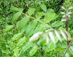 羽状复叶具3小叶;托叶披针形,长约4毫米,盾状着生、被疏硬毛;小叶的形状和大小变化颇大,卵形、卵状披针形、披针形或线形,长2.5-7厘米,宽0.8-3厘米,先端急尖或钝,基部圆形或宽楔形,两面近无毛或被极稀疏的糙伏毛。总状花序柔弱;总花梗远长于叶柄,通常有花3-4朵;小苞片线形或线状披针形;花萼钟状,长约3毫米,具不等大的5齿,裂齿被硬缘毛;花冠黄色,旗瓣极外弯,近圆形,长约l厘米,宽约8毫米;龙骨瓣具长而尖的耳。荚果圆柱形,长3.5-6.5厘米,宽4毫米,无毛,开裂后旋卷;种子4-8颗长圆形,长约4毫米,宽约2毫米,深灰色,种脐线形,凸起,长3毫米。花、果期8-10月。