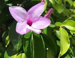 紫花络石,是夹竹桃科、络石属常绿木质藤蔓植物,,全株具白色乳汁,叶对生,具羽状脉。花序聚伞状,花白…