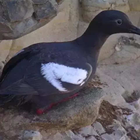 海鸽为海雀科海鸽属动物,是一种黑白两色的海鸟。一般嘴尖,腿红色。能潜入深水于底层觅食。