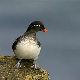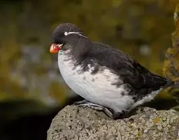 角嘴海雀,是海雀科、角嘴海雀属的中型海鸟,体长32-41厘米,嘴短而粗呈圆锥状、橙色。夏羽上嘴基部…