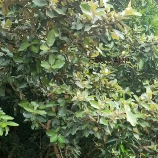 常绿乔木,高约10米;树皮灰黑色,小枝幼时被白色鳞秕。叶革质,矩圆状披针形、椭圆形或卵形,长10-20厘米,宽5-10厘米,顶端锐尖或钝,基部钝,上面无毛或几无毛,下面密被银白色鳞秕;叶柄长1-2厘米;托叶披针形,早落。
