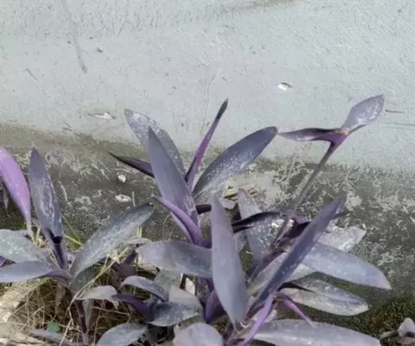 紫竹梅即紫鸭跖草(拉丁学名为:Setcreasea purpurea Boom.),又名紫叶草、紫锦草等,为鸭跖草科多年生草本植物,植株高20-30厘米,叶长圆形,略有卷曲,紫红色,被细绒毛。茎紫褐色,初始直立,伸长后呈半蔓性,呈地被匍匐状。春夏季开花,花色桃红,有变种,叶上有白色条纹。花小、白色,夏秋开放。在日照充分的条件下茎叶均呈深紫色且花量较大。喜温暖、湿润,不耐寒,忌阳光暴晒,喜半荫。对干旱有较强的适应能力,适宜肥沃、湿润的土壤。