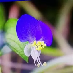 多年生草本,高20~50厘米。茎多分枝,带肉质,紫红色,下部匍匐状,节上常生须根,上部近于直立。叶互生,披针形,长6~13厘米,宽6~10毫米,先端渐尖,全缘,基部抱茎而成鞘,鞘口有白色长睫毛,上面暗绿色,边缘绿紫色,下面紫红色。花密生在二叉状的花序柄上,下具线状披针形苞片,长约7厘米;萼片3,绿色,卵圆形,宿存;花瓣3,蓝紫色,广卵形;雄蕊6,2枚发商,3枚退化,另有1枚花丝短而纤细,无花药;雌蕊1,子房卵形,3室,花柱丝状而长,柱头头状。蒴果椭圆形,有3条隆起棱线。种子呈三棱状半圆形,汉棕色。花期夏秋。