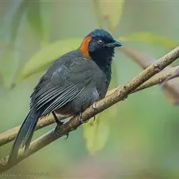 栗颈噪鹛是噪眉科、噪鹛属中型鸟类,体长22-25厘米。头顶至枕暗石板灰色,…