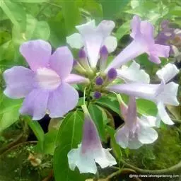 蒜香藤A.H.Gentry),又名紫铃藤、张氏紫葳,为紫葳科常绿藤状灌木。植株蔓性,具卷须,…
