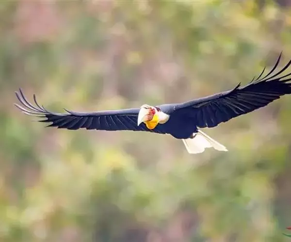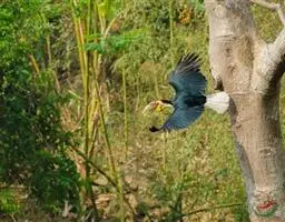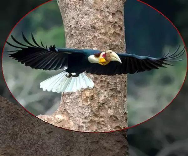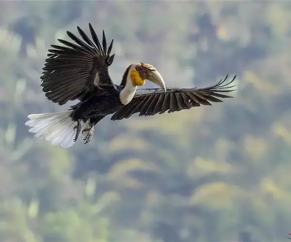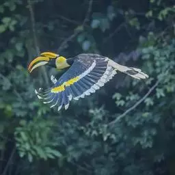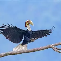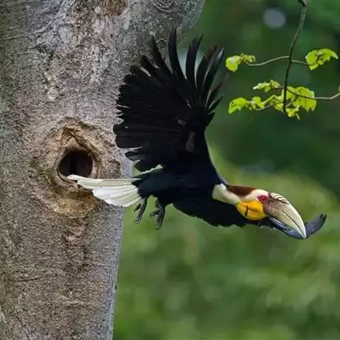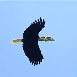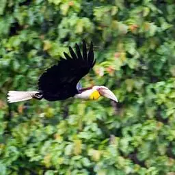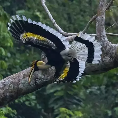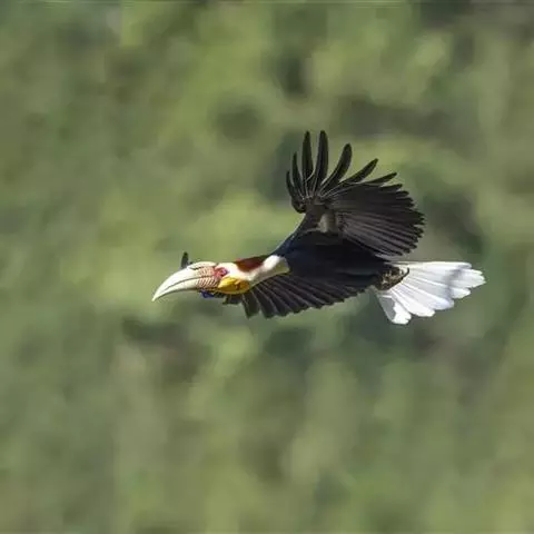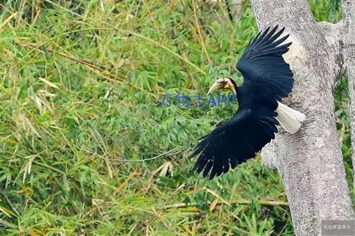 花冠皱盔犀鸟 主要栖息于海拔400~1500m的亚热带常绿阔叶林中,尤其在河流沿岸湿性常绿阔叶林中较易见。