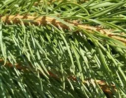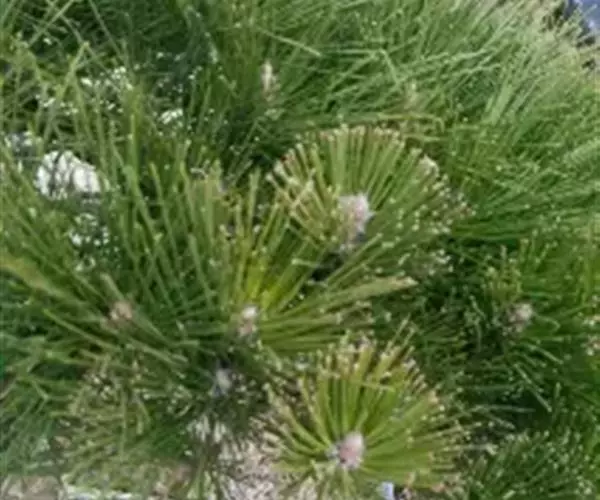 乔 黑松 木,高达30米,胸径可达2米;幼树树皮暗灰色,老则灰黑色,粗厚,裂成块片脱落;枝条开展,树冠宽圆锥状或伞形;一年生枝淡褐黄色,无毛;冬芽银白色,圆柱状椭圆形或圆柱形,顶端尖,芽鳞披针形或条状披针形,边缘白色丝状。针叶2针一束,深绿色,有光泽,粗硬,长6-12厘米,径1.5-2毫米,边缘有细锯齿,背腹面均有气孔线;横切面皮下层细胞一或二层、连续排列,两角上二至四层,树脂道6-11个,中生。