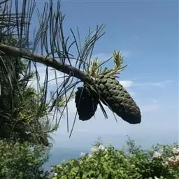 黑松(Pinus thunbergii Parl.),别名白芽松,常绿乔木,高可达30公尺,树皮带灰黑色。四月开花,花单,雌花生于新芽的顶端,呈紫色,多数种鳞(心皮)相重而排成球形。成熟时,多数花粉随风飘出。球果至翌年秋天成,鳞片裂开而散出种子,种子有薄翅。果鳞的麟脐具有短刺。原产日本及朝鲜南部海岸地区。