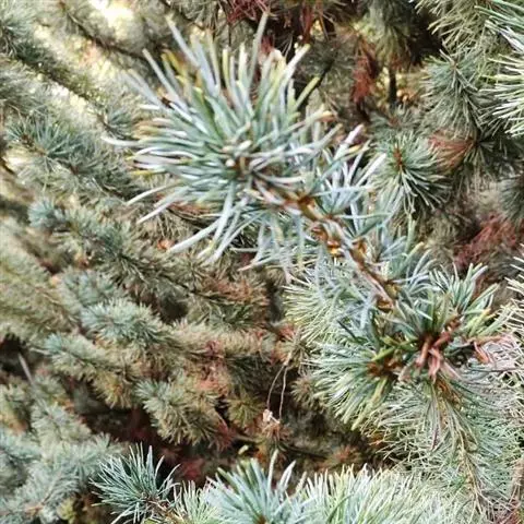 球果成熟前绿色,熟时褐色,圆锥状卵圆形或卵圆形,长4-6厘米,径3-4厘米,有短梗,向下弯垂;中部种鳞卵状椭圆形,鳞盾微肥厚,横脊显著,鳞脐微凹,有短刺;种子倒卵状椭圆形,长5-7毫米,径2-3.5毫米,连翅长1.5-1.8厘米,种翅灰褐色,有深色条纹;子叶5-10(多为7-8)枚,长2-4厘米,初生叶条形,长约2厘米,叶缘具疏生短刺毛,或近全缘。花期4-5月,种子第二年10月成熟。