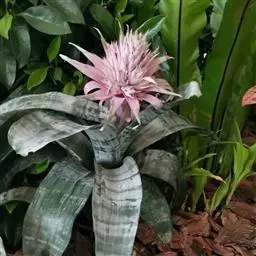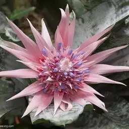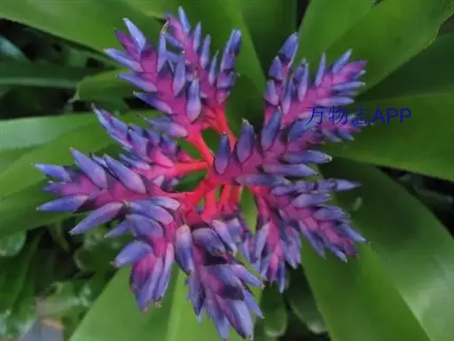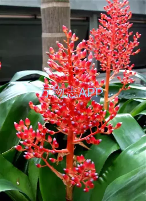 珊瑚凤梨(Aechmea fulgens Brongn.)凤梨科多年生附生草本,也可陆生。叶狭长,叶缘光滑或带刺,叶片莲座状丛生。叶面常有诱人的斑点或条纹。花序自叶丛中抽出。