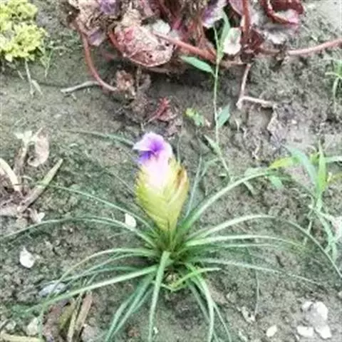 紫花凤梨,是凤梨科铁兰属的多年生草本植物。株高不及30厘米;叶片拱状线形,叶丛族生于短缩茎上,…