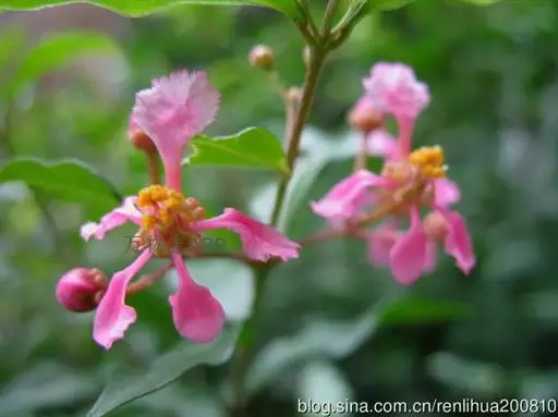 花为浅粉红色或深红,花瓣5枚,腋生,聚散花序。核果,形似樱桃,有三浅沟,微呈三瓣状,未熟果绿色,渐转淡红色,成熟果红色,果皮薄,果肉黄色,柔软多汁液,种子约有3-5个。果重约7-11克。