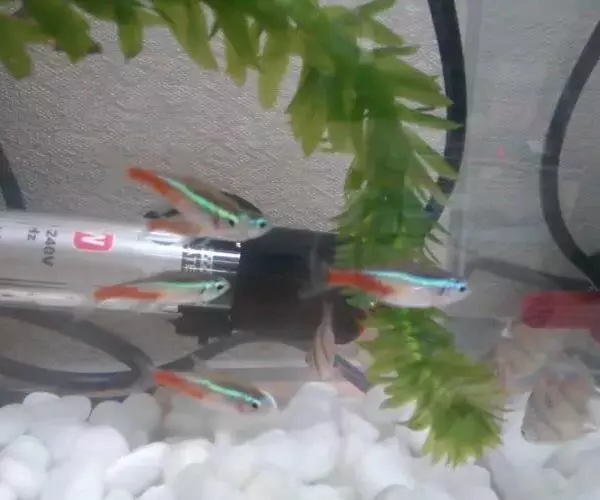 红绿灯鱼体型娇小,全长3~4厘米,鳍也不大。体色突出在侧线上方有一条霓虹纵带,从眼部直至尾柄前,在光线折射下既绿又蓝,尾柄处鲜红色,游动时红绿闪烁。养几十尾红绿灯鱼,如观焰火。背鳍位于背中部,臀鳍较延长至尾柄后方,各鳍均透明。红绿灯鱼喜欢22~24℃水温,弱酸性,PH6.4~6.8,硬度4~8度软水的老水。故在饲养中要少换水,换水量亦宜少,环境安静,不要强光照射。对饵料不苛求,鱼虫、水蚯蚓、干饲料都肯摄食。红绿灯鱼喜欢集体活动,育几十尾一群,它们将整日欢快游泳。