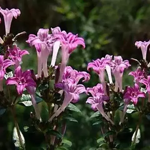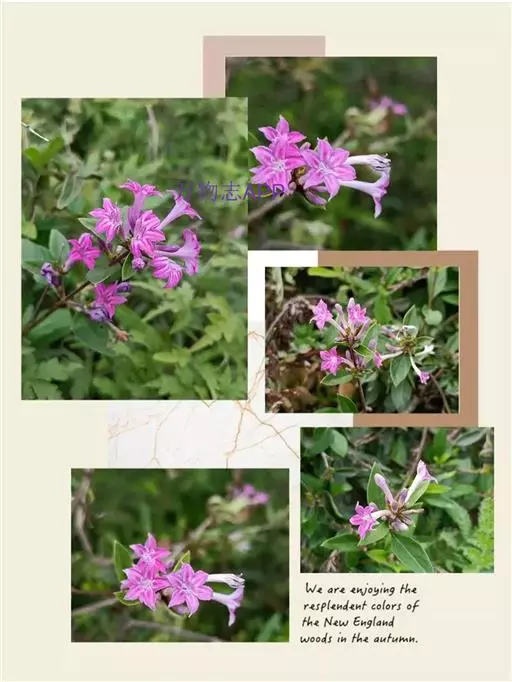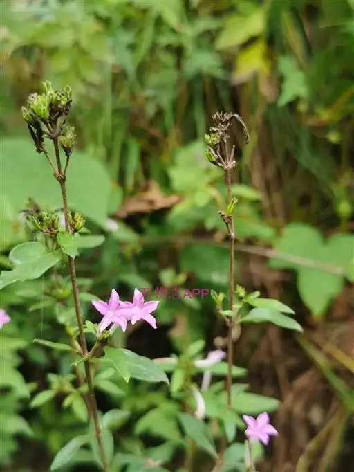 花无梗,常3-7朵簇生枝顶,很少在小枝上部腋生;小苞片透明,卵形,长约3毫米,外面被柔毛,约2/3至1/2合生,裂片近三角形,顶端有硬尖头,与萼近等长;萼裂片阔卵形,长约1.3-1.5毫米,顶端钝,边缘密生缘毛;花冠淡紫红色,漏斗状,长11-14毫米,有时可达20毫米,外面被微柔毛,冠管狭长,下部常弯曲,裂片狭三角形或披针形,长约2-4毫米,顶端内弯;短柱花雄蕊微伸出,花药线形,长柱花内藏,花药线状长圆形;花柱具4-5个线形柱头裂片,长柱花微伸出,短柱花内藏。蒴果长5-6毫米,种子有网状、与种皮分离的假种皮。花期6-8月,果期10月。