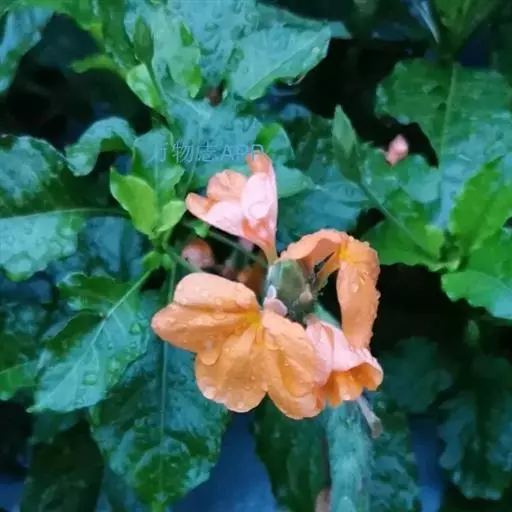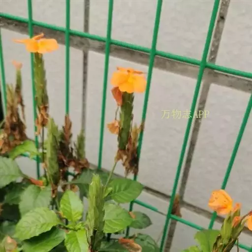 爵床科十字爵床属,常绿小灌木,株高约15~40cm,叶对生,阔披针形,全缘或波状,叶面平滑,浓绿富光泽;春末至初冬均能开花,腋出,花序密生如穗状,花瓣5裂,二唇状,橙红色及黄色,花姿雅致。花期夏、秋季。