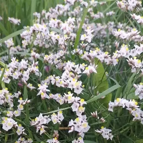 黄花补血草是干旱荒漠地区为数不多的野生花卉之一,花色艳美、繁密华贵,是难得的纯黄色宿根花卉品种,无限花序,花期5-10个月,冬季形成干花不落。特别是在绿化园林中,虽然花已经干枯,但金黄色的小花仍能在冬季观2个月,为中国北方灰色的冬日增添色彩。黄花补血草花色艳丽、花期长,不易自行脱落,可供采集的时间长,干制效果好,姿态自然、富有野趣,非常适宜做立体干花,是一种制作干花的材料,可以制成高低形态不同的花束。