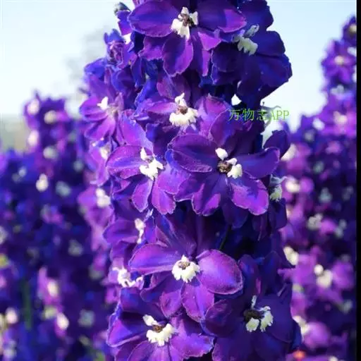 飞燕草花形别致,色彩淡雅。或丛植,栽植花坛、花境,也可用作切花。