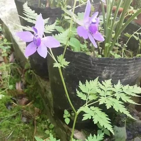 ③移植。当飞燕草长出2片真叶时,带土移植在小盆内,等到苗长大后再换1次盆。