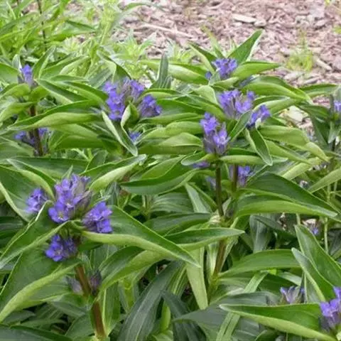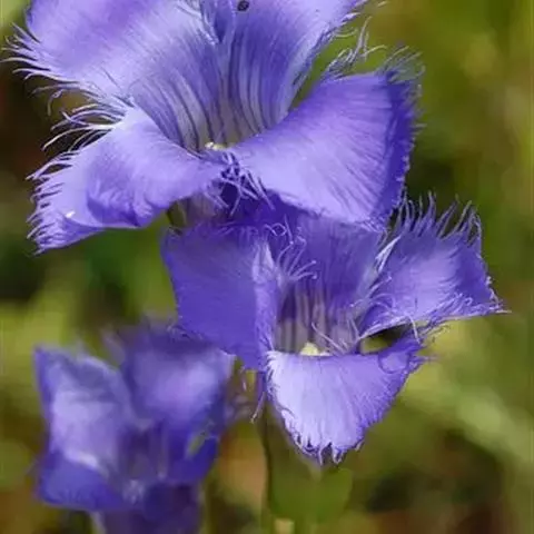 龙胆植物花色艳丽,色彩丰富,有紫、白、蓝、黄白等多种颜色,适宜作为花坛、花镜或盆花。龙胆最高不过四、五十厘米,大部份是矮小贴地丛生。一株上有许多分枝,花生于枝上顶端,成古钟形或漏斗形,有4-5个裂瓣,全缘的,也有细裂的成流海似的须。龙胆花在秋冬季一片枯黄的草丛中临风开放,显得分外朴实和幽静,龙胆开花一片片一簇簇,临风摇曳,显出一种淡雅、素静的美,因而成为著名的花卉。