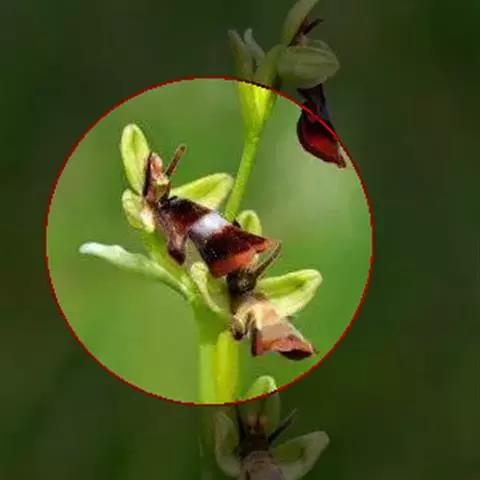 总花梗顶生,长约4-10厘米,花5-8朵排成总状花序;花梗细,长约2厘米,基部有1卵状矩圆形苞片;花大,黄色;侧生萼片4,外面2枚斜卵形,内面2枚镰刀形;旗瓣三角状圆形,先端圆,有突尖,背面中肋稍加厚;翼瓣无柄,2裂,基部裂片近方形,上部裂片较长,斧形,先端圆,背面的耳宽;唇瓣漏斗状,基部延成卷曲的短距;花药钝;子房纺锤形。花期8-9月。