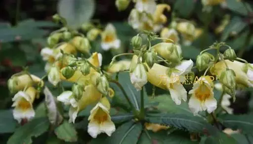 峨眉凤仙花(Impatiens omeiana Hook. f.)凤仙花科,凤仙花属一年生草本植物,高可达50厘米,不分枝,叶互生,披针形或卵状矩圆形,边缘有粗圆齿,总花梗顶生,总状花序,花5-8朵;花大,黄色;唇瓣漏斗状,花药钝;子房纺锤形。8-9月开花。