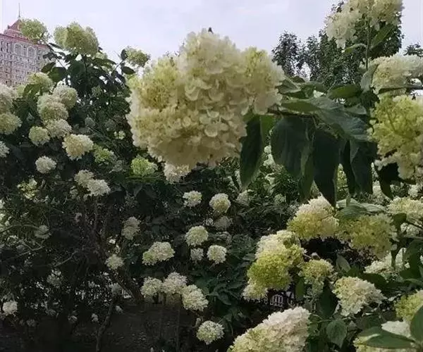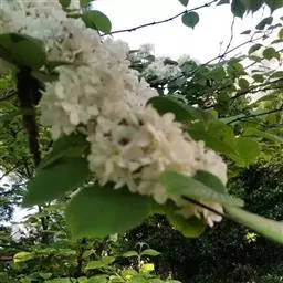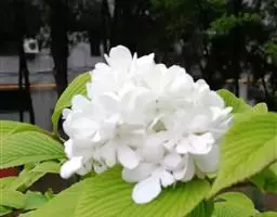 花序为大型白色花朵,形状像绣球,非常美观,是优良观花园林绿化树种。