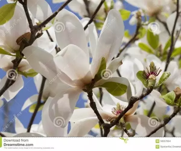 木兰花树高可达5米,花朵开放时傲立枝头,纯白圣洁,因为木兰花是先开花,花谢后才长叶,所以木兰花开时满树洁白,毫无杂色,让人陡生敬仰之感。木兰花花语是高尚的灵魂。