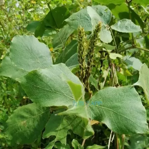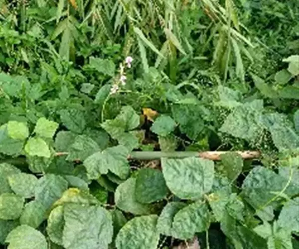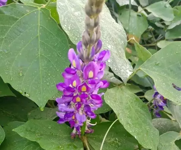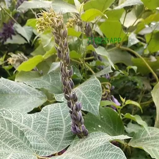 葛〔拉丁学名:Pueraria lobata(Willd.)Ohwi〕:豆科,葛属多年生草质藤本植物,块根肥厚圆柱状,叶互生,项生叶片菱状卵圆形,总状花序,腋生,蝶形花冠,紫红色。荚果长条形,扁平,密被黄褐色硬毛。7-8月开花,8-10月结果。