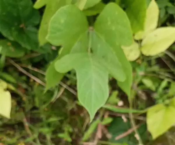 该变种与原变种区别在于顶生小叶菱状卵形或宽卵形,侧生的斜卵形,长和宽10-13厘米,先端急尖或具长小尖头,基部截平或急尖,全缘或具2-3裂片,两面均被黄色粗伏毛;花冠长16-18毫米;旗瓣近圆形。花期9月,果期11月。