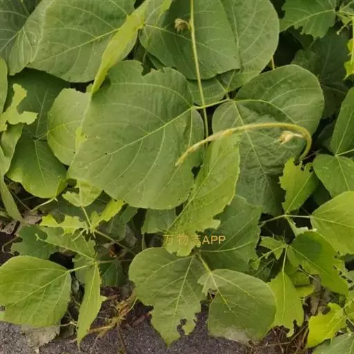 葛 粗壮藤本,长可达8米,全体被黄色长硬毛,茎基部木质,有粗厚的块状根。