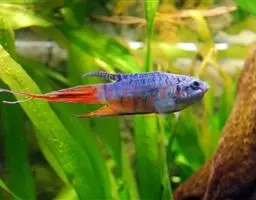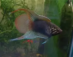 叉尾斗鱼,体形与圆尾斗鱼相似。腹鳍有1根分节鳍条特别延长,雄鱼鳍条延长尤甚,尾鳍叉形。…
