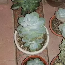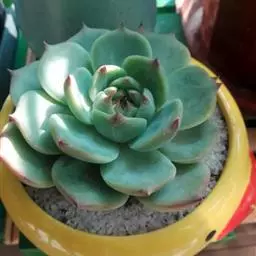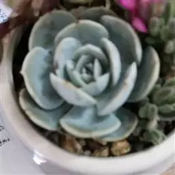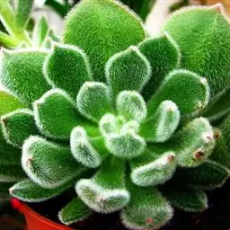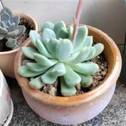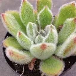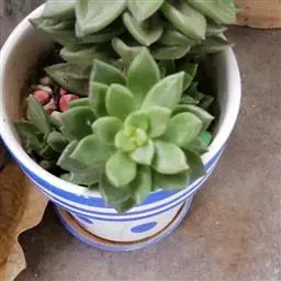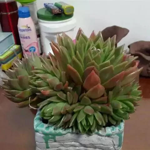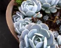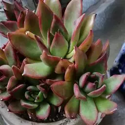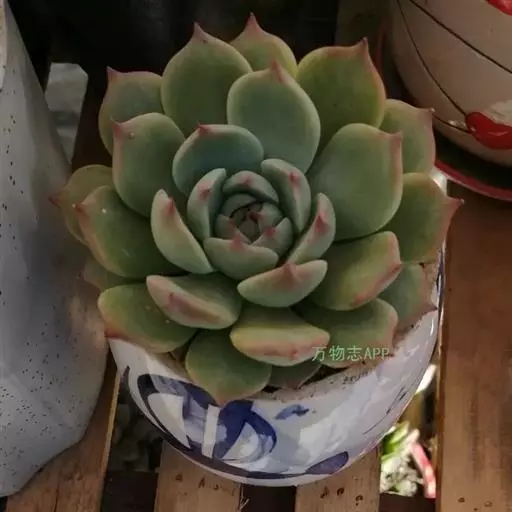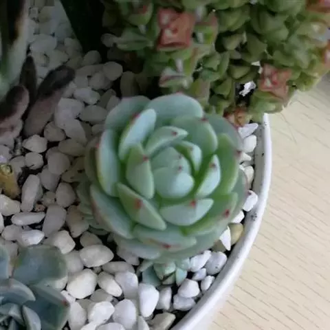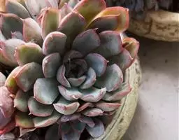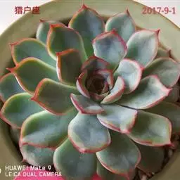 吉娃莲,景天科拟石莲花属,别名:吉娃娃(因为常与狗名混淆,所以大多数情况只叫吉娃莲), 原产于墨西哥奇瓦瓦州,生长在空气流通较好、日照充分的山坡上。吉娃莲,植株小型,无茎的莲座叶盘非常紧凑。卵形叶较厚,带小尖,蓝绿色被浓厚的白粉,叶缘为美丽的深粉红色。花序先端弯曲,钟状,红色。栽培不太困难,夏天不能浇过多的水。叶尖的红色特别美丽,是一种观赏性很强的多肉植物。