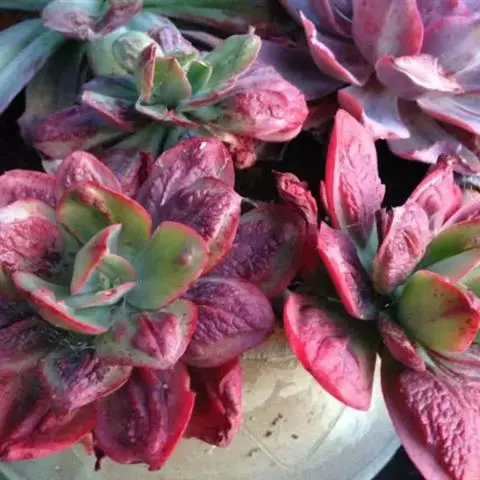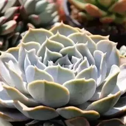 大和锦是景天科拟石莲花属的多肉植物。肉质叶排成紧密的莲座状,广卵形至散三角卵形,背面突起呈龙骨状,…