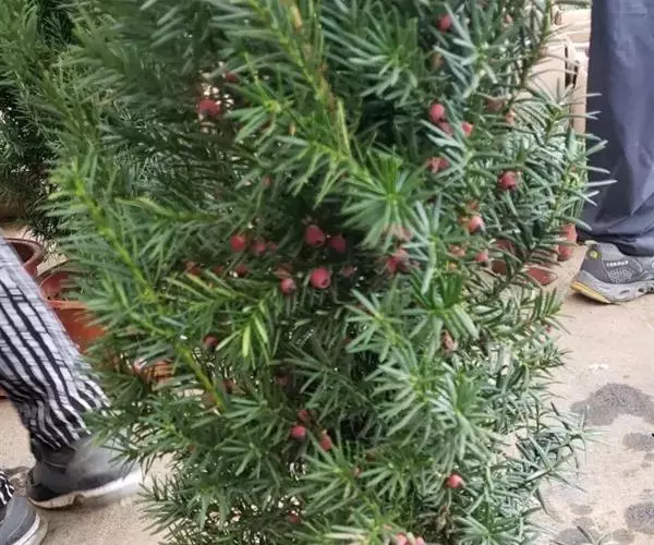 南方红豆杉:该变种与红豆杉的区别主要在于叶常较宽长,多呈弯镰状,通常长2-3.5(-4.5)厘米,宽3-4(-5)毫米,上部常渐窄,先端渐尖,下面中脉带上无角质乳头状突起点,或局部有成片或零星分布的角质乳头状突起点,或与气孔带相邻的中脉带两边有一至数条角质乳头状突起点,中脉带明晰可见,其色泽与气孔带相异,呈淡黄绿色或绿色,绿色边带亦较宽而明显;种子通常较大,微扁,多呈倒卵圆形,上部较宽,稀柱状矩圆形,长7-8毫米,径5毫米,种脐常呈椭圆形。
