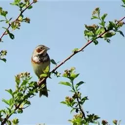 田雀鹀属雀形目、鹀科,是一种小型鸣禽,鸟体小巧玲珑,圆圆的头和长长的翅膀,喙短为圆锥形,与雀科的鸟类相比较为细弱,上下喙边缘不紧密切合而微向内弯,因而切合线中略有缝隙。通常栖息于半开放的地区的灌木丛。主以草子、种子、果实等植物性食物为食,也吃昆虫等动物性食物。非繁殖期常集群活动,繁殖期在地面或灌丛内筑碗状巢。