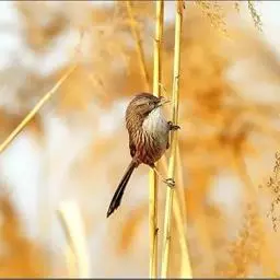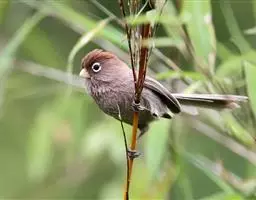 白眶鸦雀是莺科、鸦雀属小型鸟类,体长12-14厘米。嘴黄色、短而粗厚,头顶至后颈褐色沾棕具白色眼圈,…
