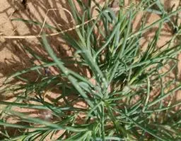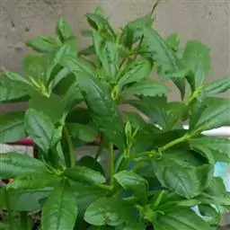 叶片革质无柄,呈披针形至匙形。可长达12cm,宽至3cm。叶片末端为钝角或锐角,基本逐渐缩小至茎部,不外翻。中脉的两侧各有3条纵脉。网状脉明显。笼蔓可长达15cm,偶尔形成笼蔓圈。