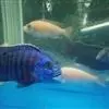 额斑刺蝶鱼,体卵圆形侧扁,有鲜明蓝色轮廓和数条鲜蓝竖纹,全身密布网格状具蓝色边缘的珠状黄点,深蓝色…