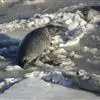 斑海豹的食性较广,主要取决于季节、海域及所栖息的环境。在黄、渤海,春夏季捕食鲱、玉筋鱼、小黄鱼等,秋冬季节则多以梭鱼为食。在日本海、阿拉斯加的近海等地还捕食鳕、鲑等鱼类。其他食物包括各种甲壳 斑海豹活动在浮冰上 类、头足类等海洋性动物。