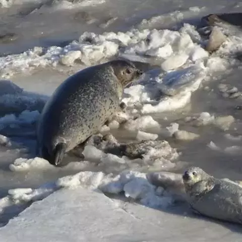 斑海豹属于鳍脚目,是寒带海生哺乳动物。主要生活在北冰洋和太平洋北部,每年春、冬季节洄游到中国渤海、黄海一带。 斑海豹一生的大部分时间是在海水中度过的,有洄游的行为。仅在生殖、哺乳、休息和换毛时才爬到岸上或者冰块上。