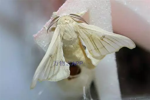 【动物形态】家蚕蛾雌雄蛾全身均密被白色鳞片。